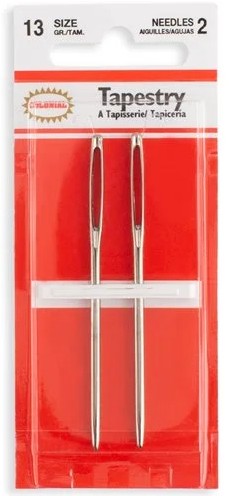 Tapestry needles are sometimes referred to as Cross Stitch needles. They have a large eye and a blunt round point and are especially adapted for the use in needlepoint, petit point, countered cross stitch and plastic canvas work. Larger tapestry needle sizes can also be used for stitching knitted projects together or crochet work and are sometimes referred to as “sewing up” needles. 2 needles each pack. Great for darning and tapestry work.